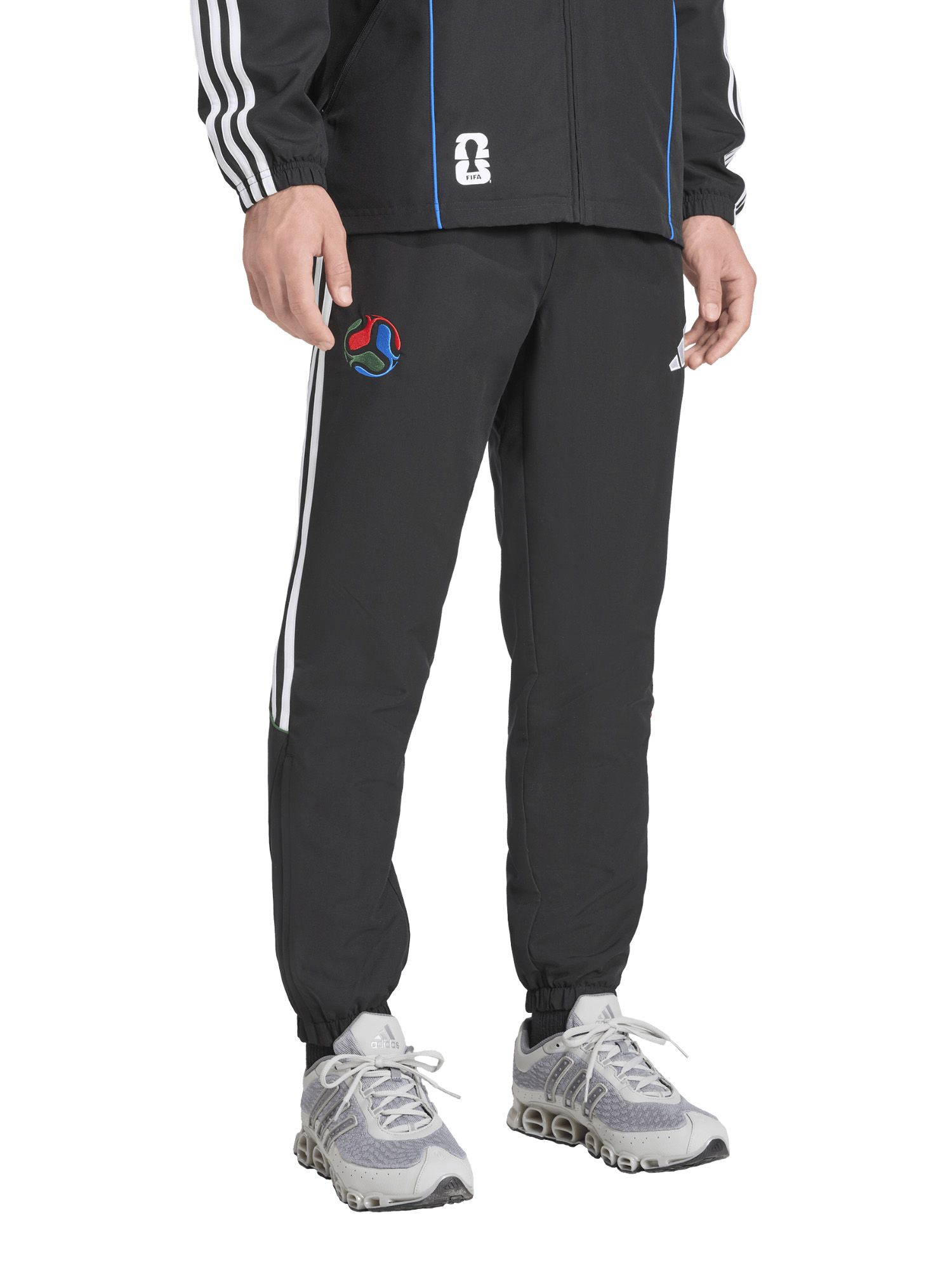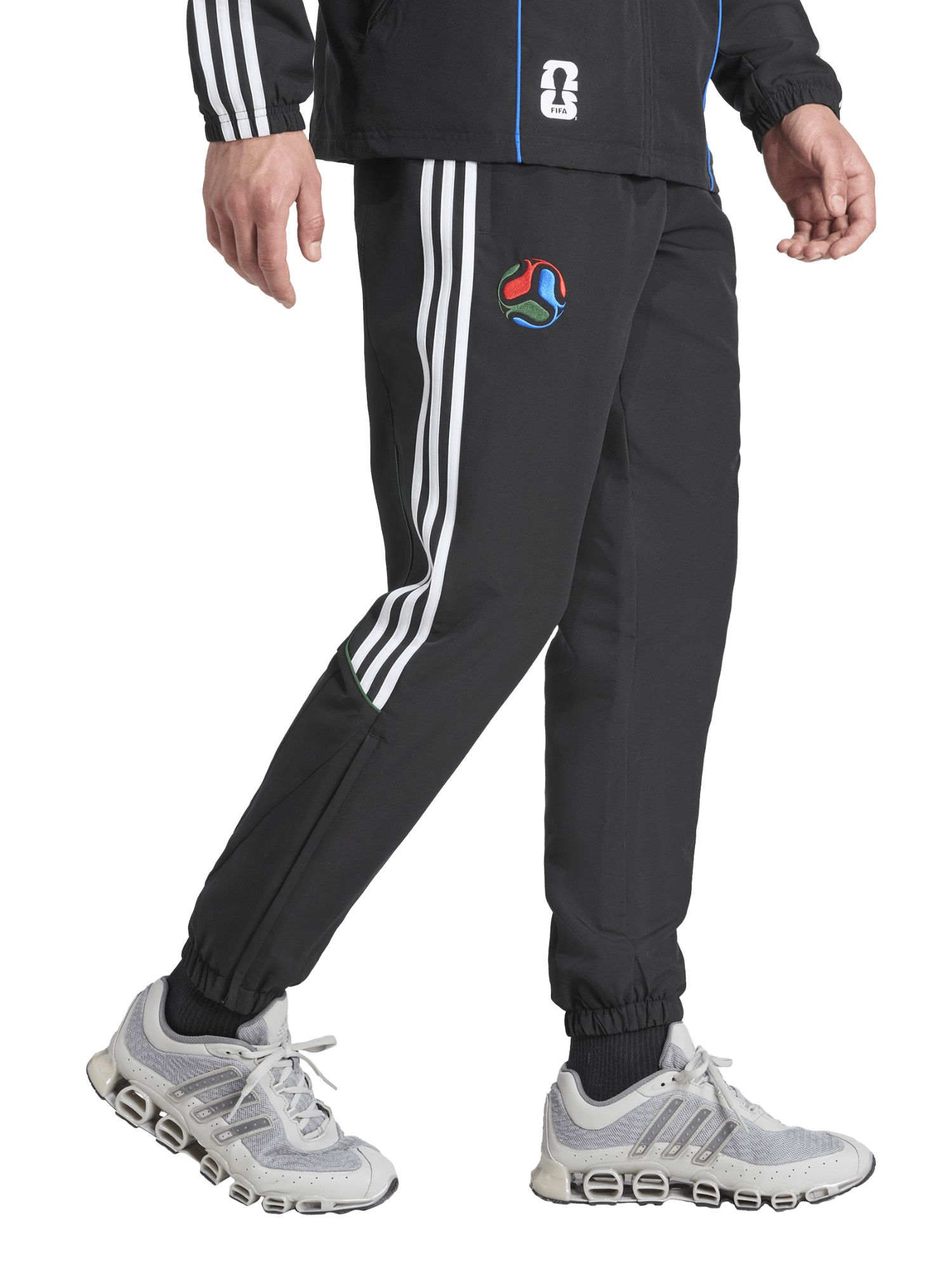 Con el logo de la FIFA exhibido con orgullo, este pantalón con puño rinde homenaje a los anfitriones, México, Estados Unidos y Canadá, integrando a la perfección sus símbolos auténticos en el diseño. Adoptá una fusión de herencia futbolística y moderna con estos pantalones deportivos, y contá con adidas para ser tu compañero en la celebración de este gran deporte.