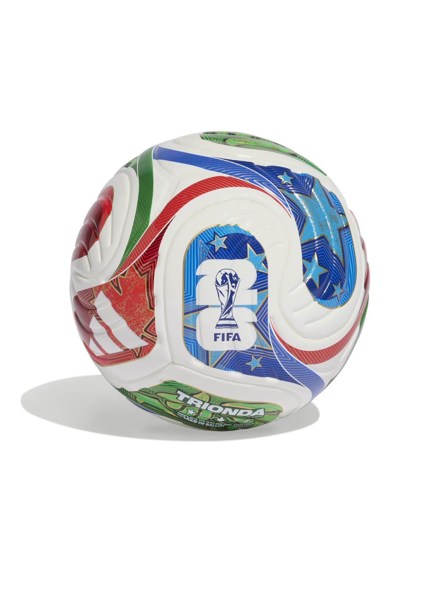 Inspirada en el movimiento vibrante de la icónica "ola", fenómeno que arrasó con los estadios de las Américas, la minipelota Trionda de adidas luce un diseño fluido de cuatro paneles que captura toda esa energÃa colectiva en cada pase. Ideal para lucirte con tus jugadas vayas donde vayas, tiene un núcleo de espuma y un tamaño reducido que la hace tan práctica como divertida. Inspirada en la pelota para partidos oficiales de la Copa Mundial de la FIFA 2026â„¢, esta versión replica su estilo con detalles grabados que se combinan con los sÃmbolos y colores de los tres paÃses anfitriones del torneo.
